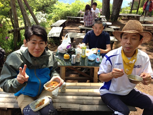 今回のメインイベントはずばりアウトドアクッキング!!参加者全員でお肉や野菜、水などを持ち寄り、3種類のカレーを作りました!お鍋やガスバーナーを持参しての山頂クッキングは大人も子どもも真剣そのもの。自分たちで作った絶品カレーに舌鼓を打ちました。食後には美味しいコーヒーでほっと一息、バーナーでマシュマロを焼いて食べるスイーツ付きと、心もお腹もめいっぱいに膨らんだ登山となりました。